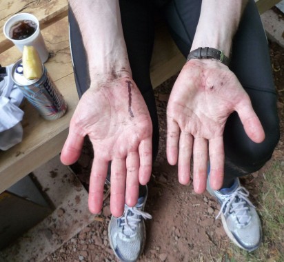 für eine hohe Aussteigerquote. Nach einem etwas zu warmen Beginn und daraus resultierendem Flüssigkeitsdefizit folgte eine selbst in der Höhe warme Nacht, so dass ich nicht mal etwas drüberzog. Schwierig bis unzumutbar waren jedoch die zahlreichen Wurzelpassagen in der Nacht, denn man bräuchte zwei Lampen, um sowohl Wegführung mit Wanderzeichen als auch Untergrund zu sehen. Nach dem zweiten heftigen Sturz mit dadurch ausgelösten Wadenkrämpfen beschloss ich, diese Waldpfade im Dunklen nur noch zu gehen. Anfangs in einer 3-er Führungsgruppe laufend fiel ich in einer Schwächephase von km 50 bis km 90 bis auf Platz 6 weit zurück (Eigentlich war es nur bis Platz 5, aber vom Ausstieg des Marcus Baldauf erfuhr ich erst bei km 105). Vielen Dank auch an die mobilen Verpflegungshelfer, die wohl für Jörg Kupfer mitfuhren, aber alle mitversorgten : ohne die Hilfe vor Kahlert wäre ich bei dem 26km-VP-Abstand verdurstet ! |