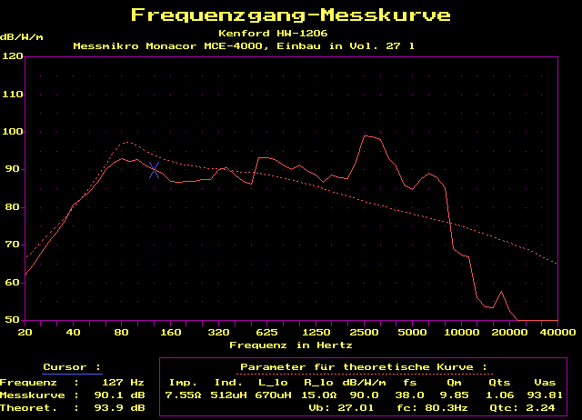 weich, 12.5cm Magnet, 93dB/W, fs:32.8Hz, Qts:0.75, Vas:150l, 150 Wrms /