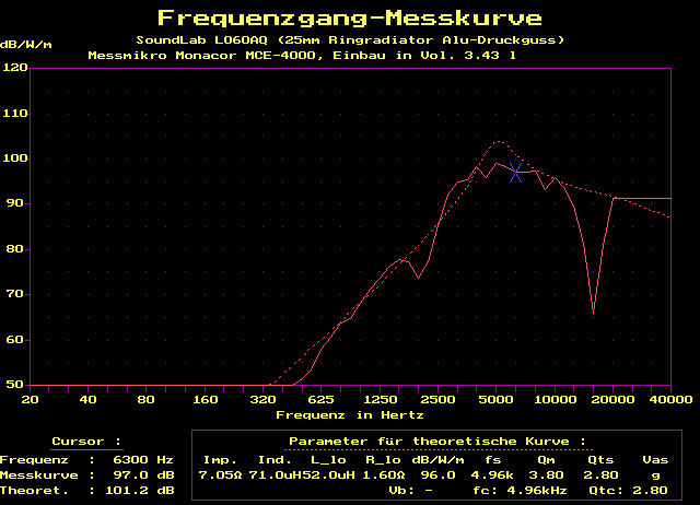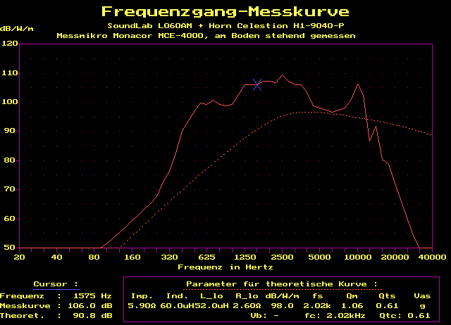 geringen Preis : mit Horn HL-1018 von 500 Hz bis 14 kHz (je -3dB) sehr breitbandig.