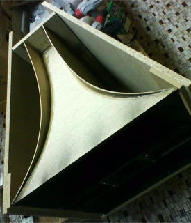 Schallwand, mit den Gehrungen nach hinten bündig zur Kante