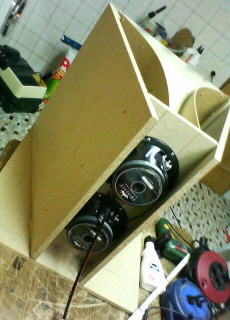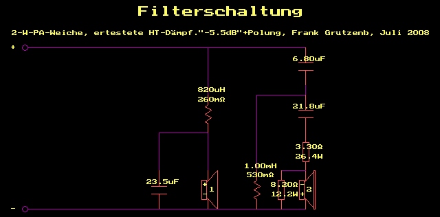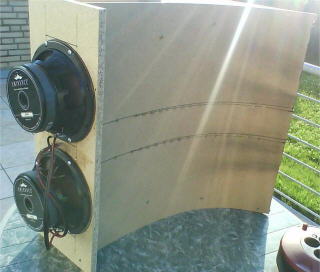 der Treiber angeklemmt und samt Horn vorne montiert werden.