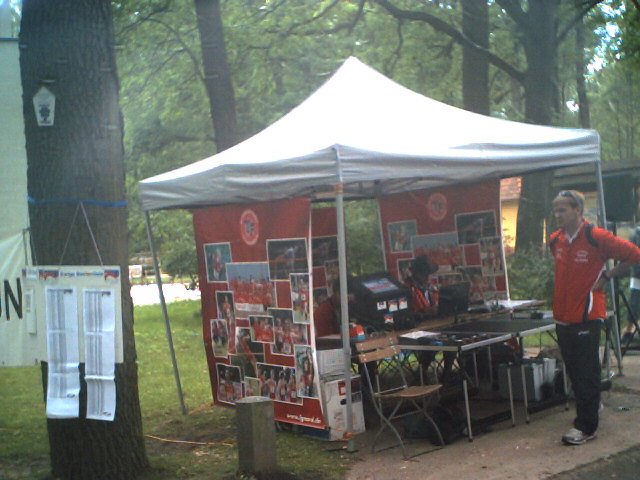 Zeitnahmezelt im Ziel mit Chef Jörg Stutzke *1