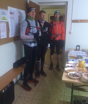 ist die Qualität der Jurasteig-Markierungen eindeutig schlechter. Nach dem letzten VP12 bei km 223 in Holnstein treffen wir 6 km vor Schluss auf Robert Gehlhaar, der dort Führende der langsamen Startgruppe. Nun zu dritt gehen wir bis ins Ziel, bis auf einen kleinen Abschnitt, wo ich vor Kälte bettele, nochmals zu laufen. In dieser zweiten Nacht wurde es nämlich eisig kalt. So kam ich nach 37:51 h am Sonntag früh um 4:51h im Ziel an ! Ich hatte zwar eine leicht bessere Zeit erwartet, doch da kannte ich die Strecke noch nicht. Der hiermit erreichte Platz 3 ist schon als Erfolg zu werten. Viele für 239km gemeldete Läufer beendeten bereits im 170km-Ziel und wenige gaben vorher auf. |