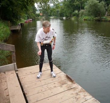 versenkt ! (sowie auch vorher einen Werrastein per Busfahrt in die Saale transportiert) |