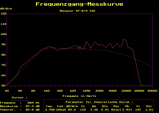 mittelweich, gekapselter 8cm Magnet, 89dB/W, fs:152Hz, Qts:0.72,