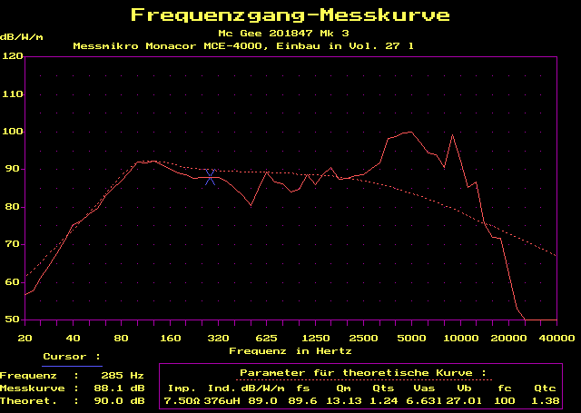 weich, 10cm Magnet, 91dB/W, fs:38.8Hz, Qts:0.51, Vas:51.6l,