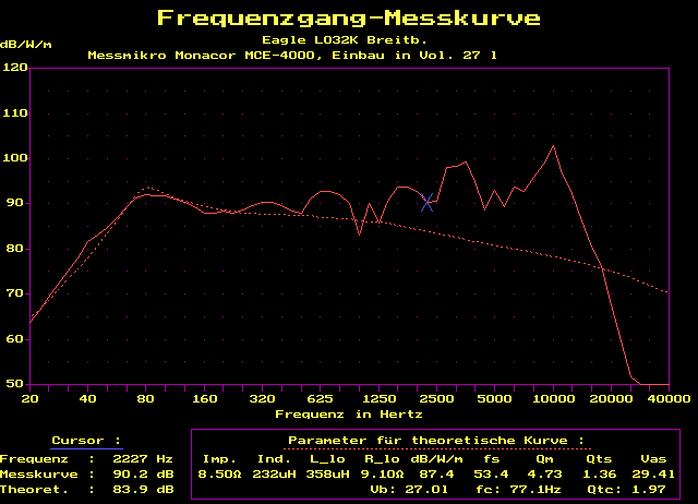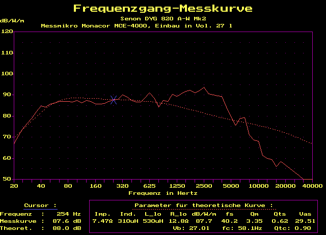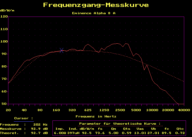 weich, 12cm Magnet, 87.7dB/W, fs:40.2Hz, Qts:0.62, Vas:29.5l,