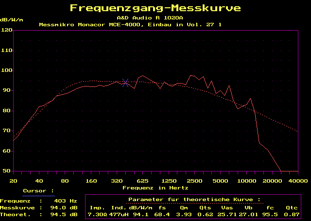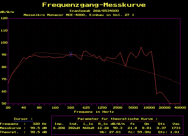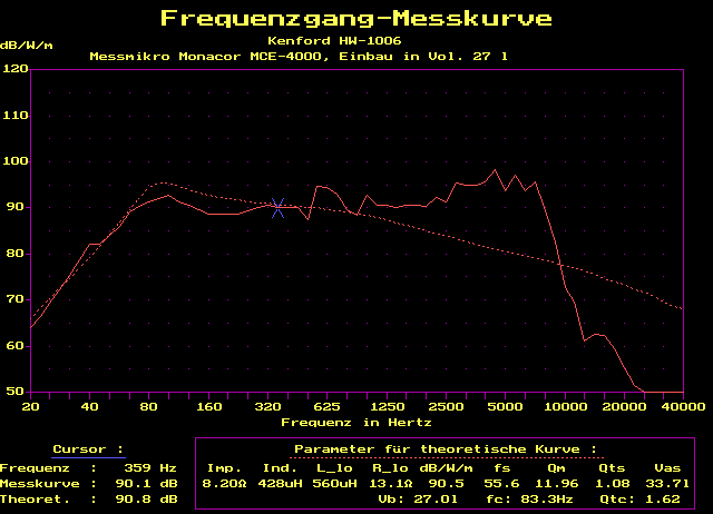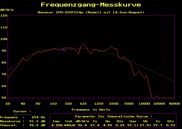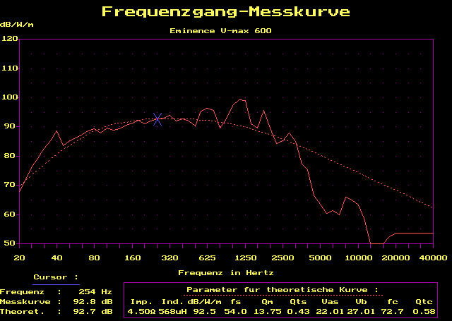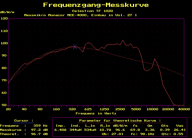 leichter 1000 Hz-Resonanz bis 2500 Hz sehr linear. Für Offene Schallwand,