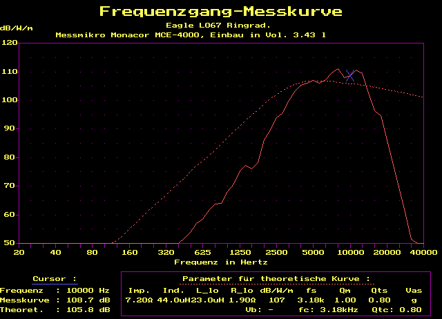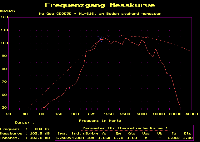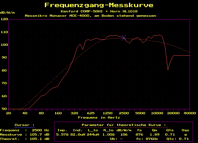 geringen Preis : mit Horn HL-1018 von 500 Hz bis 14 kHz (je -3dB) sehr breitbandig.
