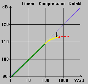 Kompressionsbereich : Hier wird der Lautsprecher nicht mehr proportional