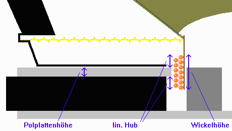 bzw. linearer Hub (+-) = (Wickelhöhe - Polplattenhöhe) / 2