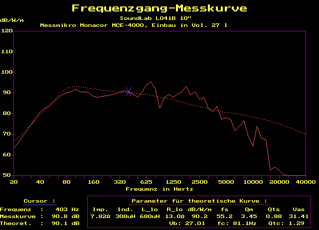leichter 1000 Hz-Resonanz bis 2500 Hz sehr linear. Für Offene Schallwand,