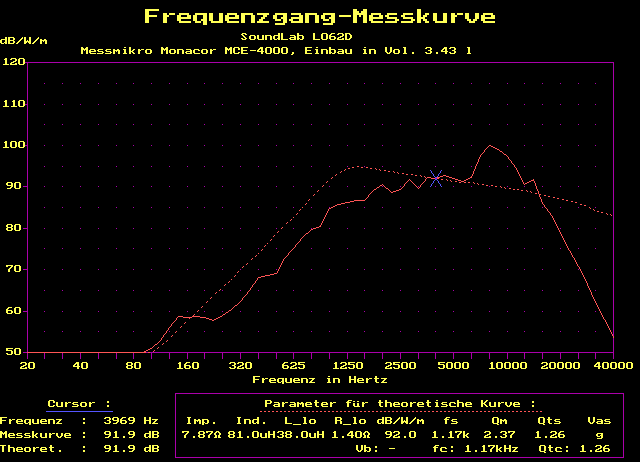 Danach L062B : 100mm rund, ohne Streu-Diffusor, mit reell 91dB viel lauter !