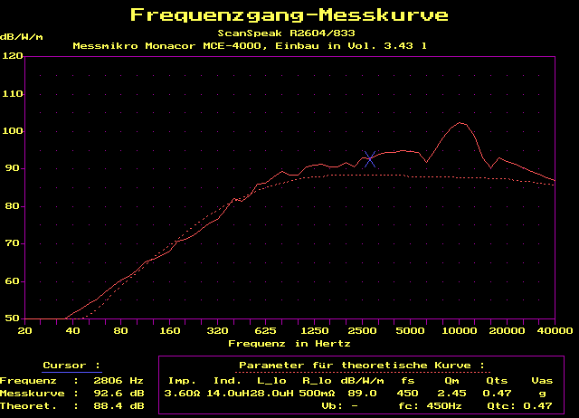Trotz tiefer fs wegen niedrigem Q-Faktor doch erst ab 2.3 kHz